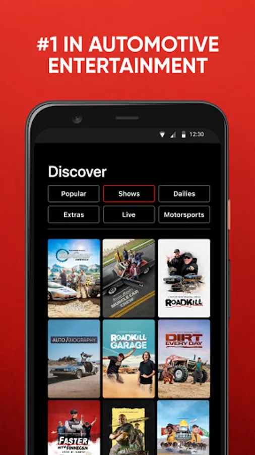 Dirt, street or track – stream the car shows that drive you. Stream thousands of hours of exclusive originals, hit series, live events, motorsports and more, across multiple devices and without a cable subscription.