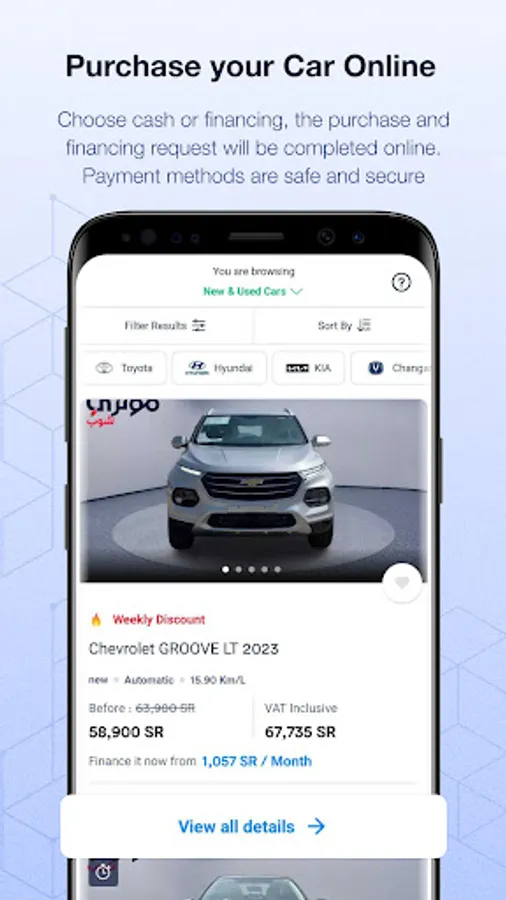 Shop by Motory application allows you to buy a used or new car online from anywhere in Saudi Arabia, as it offers a variety of services and advantages, including:
