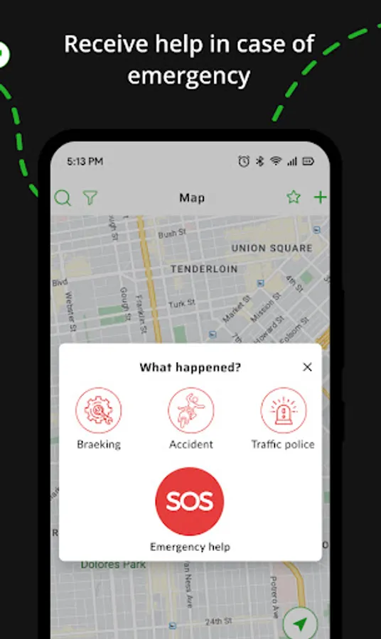 S.O.S.: Just push the SOS button to receive help from nearby riders or inform them about the police post.