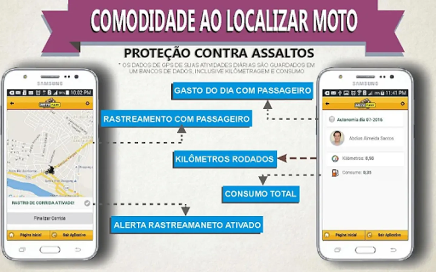 The Motopiaxi Ipiaú-Bahia application uses modern technology, containing more than 20 functions, providing a rich experience in details and data for both mototaxis and passengers. With the application Mototáxi Ipiaú, the mototaxistas will transform your motorcycle into a real company, through statistics and data of their daily activities, such as round mileage and fuel consumption. In addition to 24-hour monitoring, essential in the prevention of theft and robberies, among other functions.