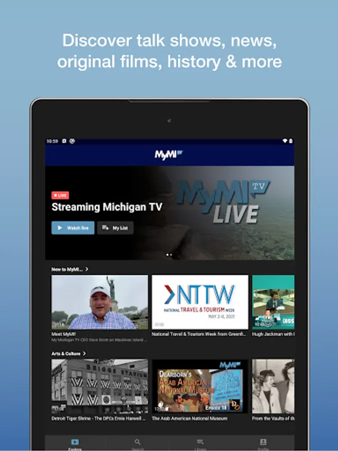 Michigan-focused live and on-demand programming including talk shows, news, travel, food, history and original films, series and live events. Enjoy 24/7 live programming with our partners including some of the state’s top entertainment and cultural experts and hot-spots.
