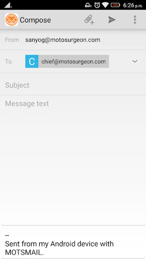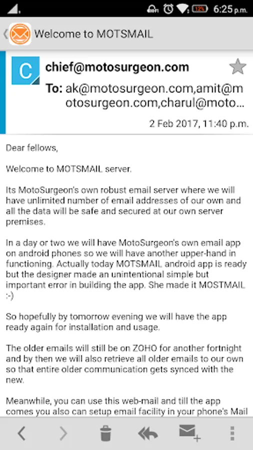 MOTSMAIL for Android works with only MotoSurgeon Automobile Pvt Ltd Mail Service.