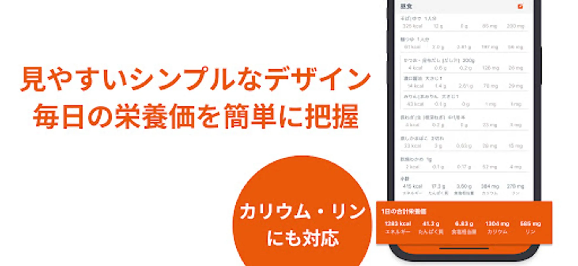 It supports display of energy, protein, salt equivalent, potassium, and phosphorus. Other nutritional value labeling will be supported in the future.