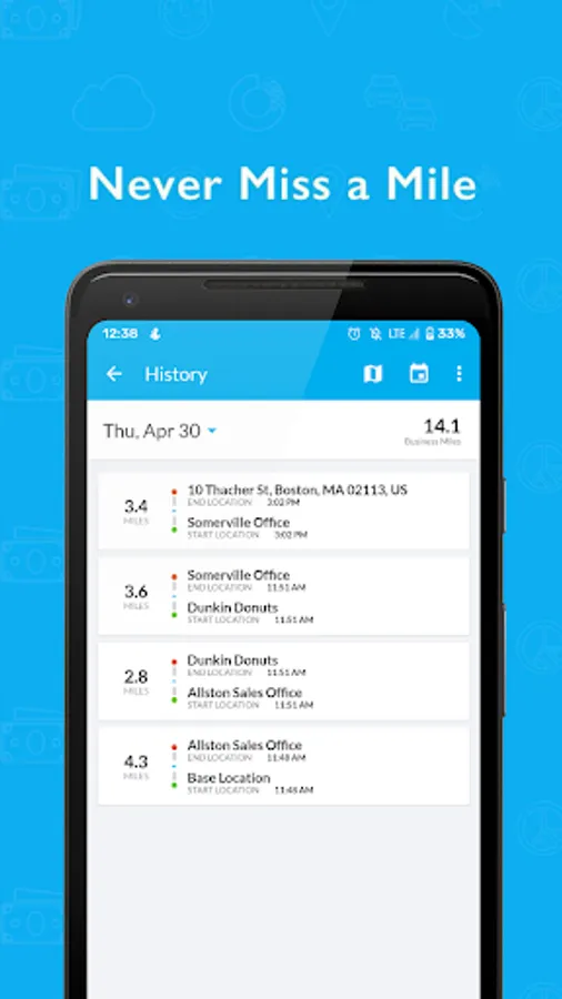 - “Set it and forget it” - set your business hours to automatically track business mileage throughout your day