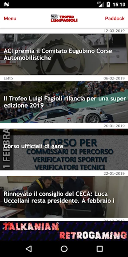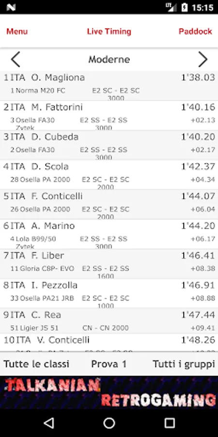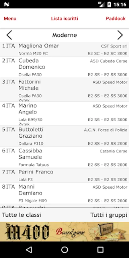 If you're a fan, you'll see the list of members, the live timing, the state of the race and all the details on the track, the history of the competition and the great champion Luigi Fagioli.