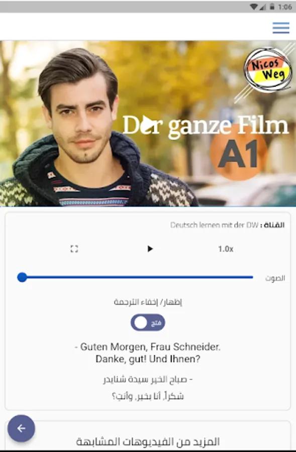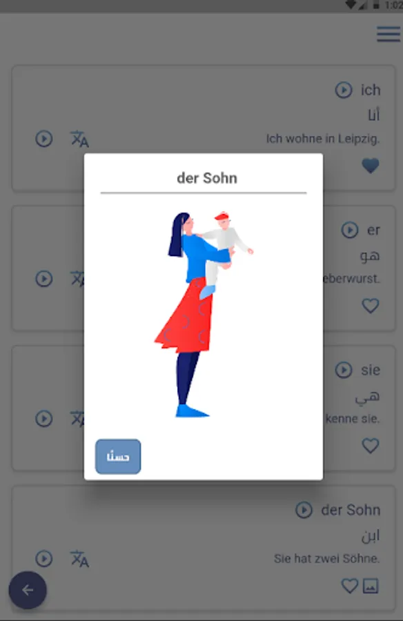 With the German language learning application, you can enjoy learning the German language through a wide range of words, sentences, exercises, and videos translated into German as well as the Arabic language.