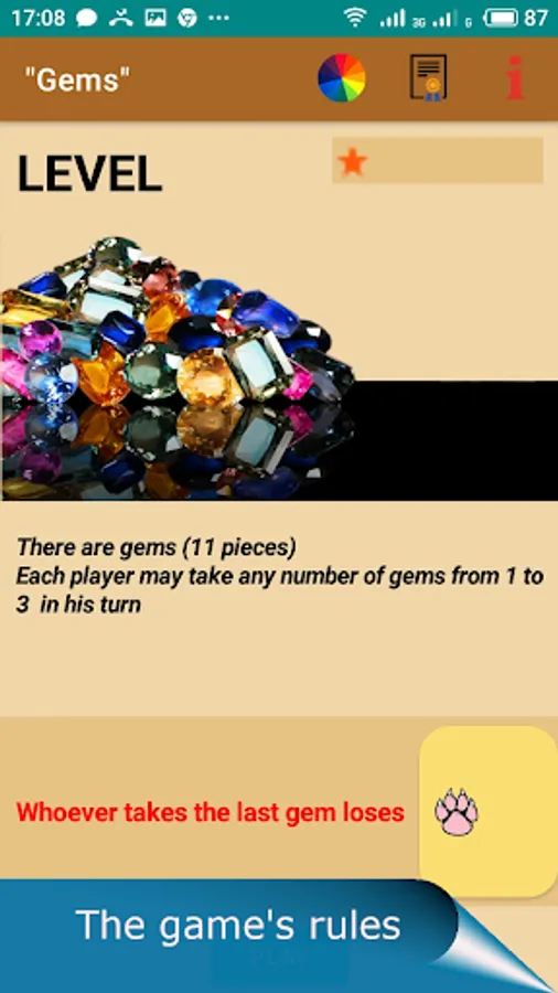 If you win, you up to the next level, where it will be harder to win. Lost, You go back to the previous level. So, try to reach the top fifth level, where you choose your own rules and you'll keep your status on it even lost. At this level your achievements will be marked with small rubies. The ultimate goal is 5 stars + 5 rubies.
