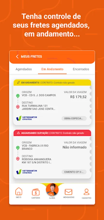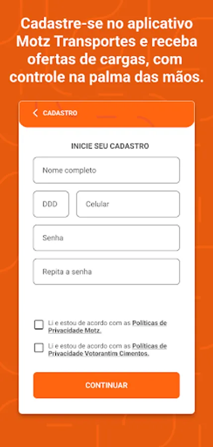 Motz is the digital carrier that combines partnership, tradition and care to boost self-employed truck drivers across the country. We entered the market to explore new routes and add value to the Brazilian road transport scenario. Thus, we present the new application for drivers who wish to charge at Votorantim Cimentos units.