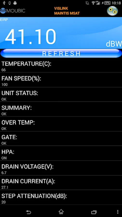 App to operate "standard BUC (Wavestream)" of "MSAT system (VISLINK)".