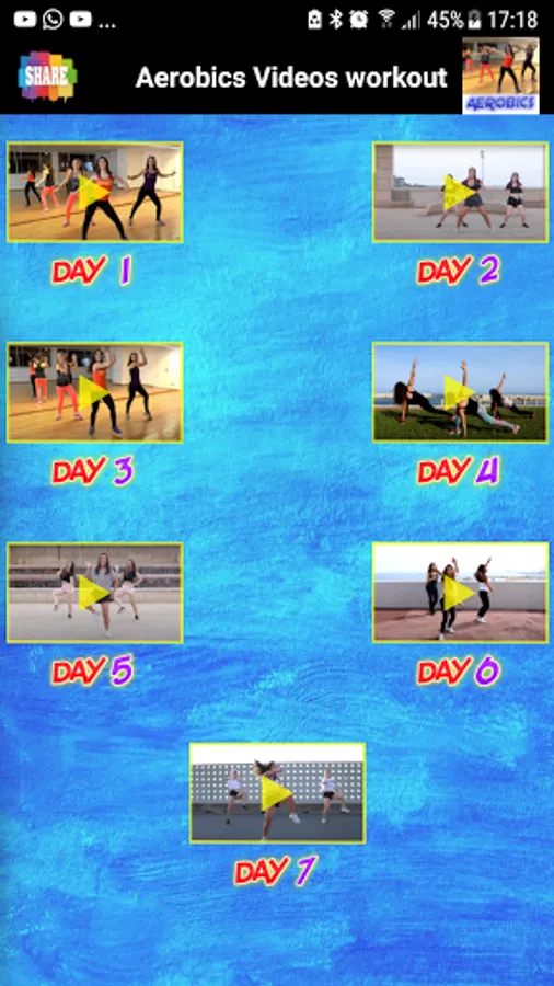 Download the "Aerobics Videos 7 Days Workout Weight loss - Women" application without internet, to watch clips with sound, image, high quality, and full screen.