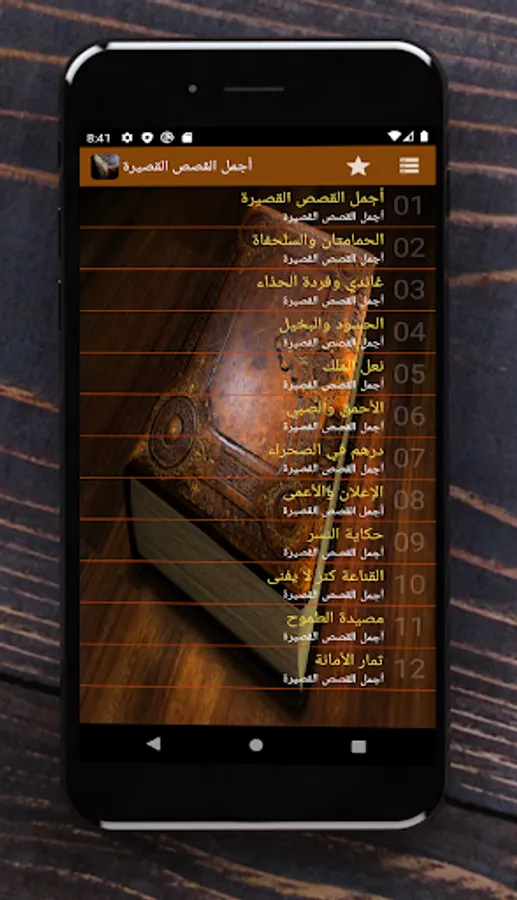 The application contains 12 different sections of stories and tales: