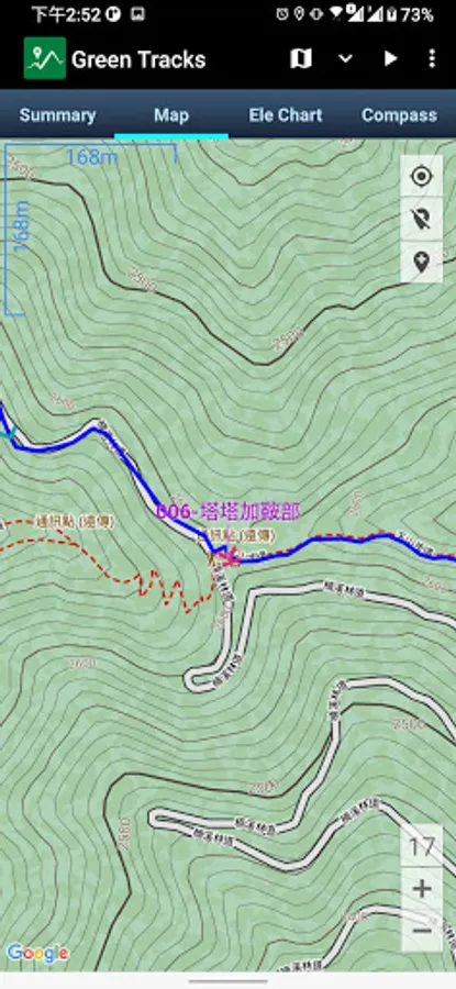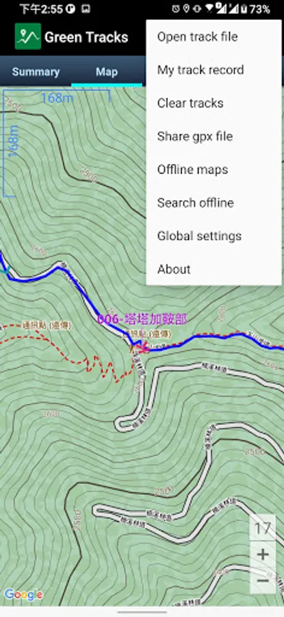 Green Tracks support Mapsforge and MBtiles offline map. It's helpful in climbing and hiking.