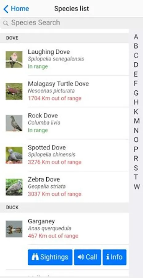 · Detailed information to show if the species is in range or provide the user with an approximate distance to the nearest point of its range