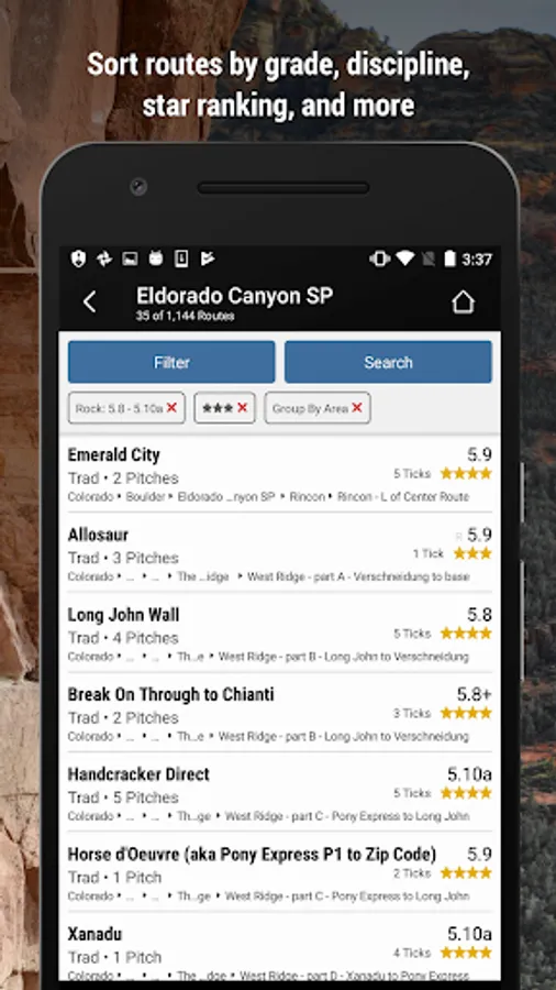 • Search our entire database of 155,000+ climbing routes, even offline.