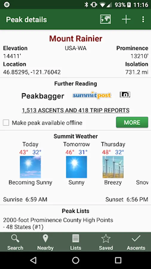 * See weather forecasts for all U.S. peaks from the National Weather Service, and for 11,000+ major peaks worldwide from mountain-forecast.com