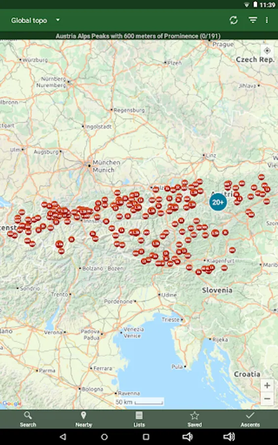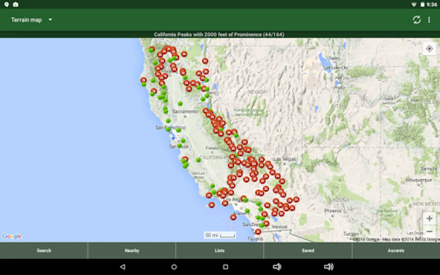 * Filter peaks by prominence, or climbed vs. unclimbed, or inclusion on a peak list