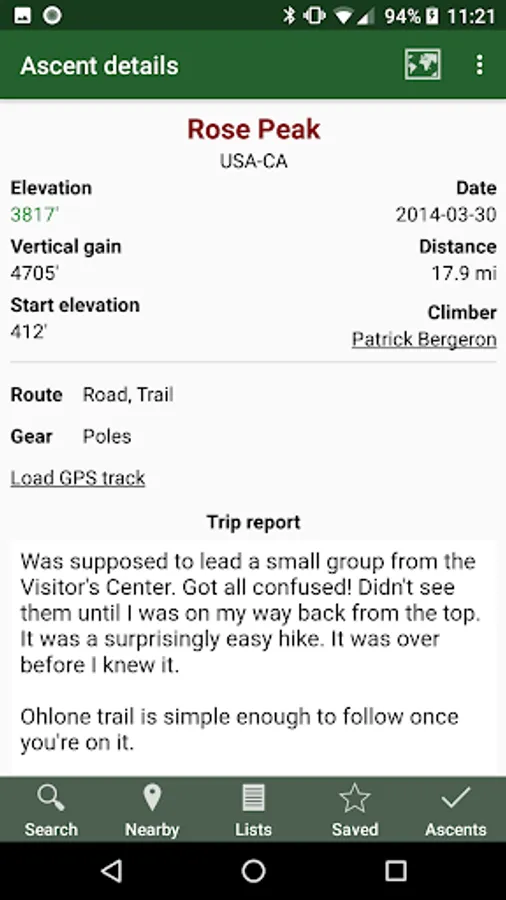 1) Click on the "Load GPS track" link on the ascent details page for an ascent that has a GPS track.