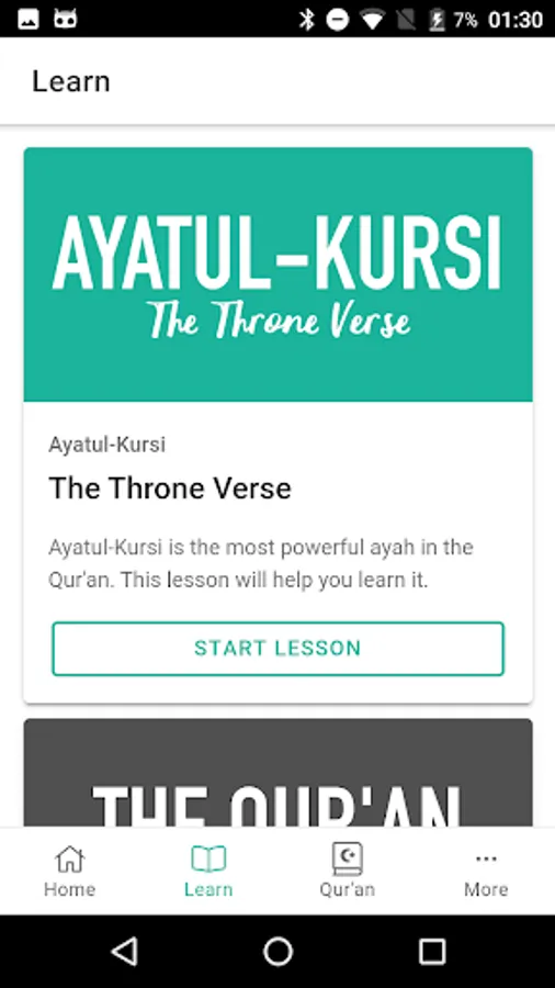 Learn and memorise Ayatul-Kursi, the full Qur'an and the 99 Names of Allah.