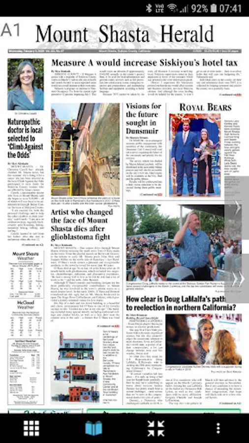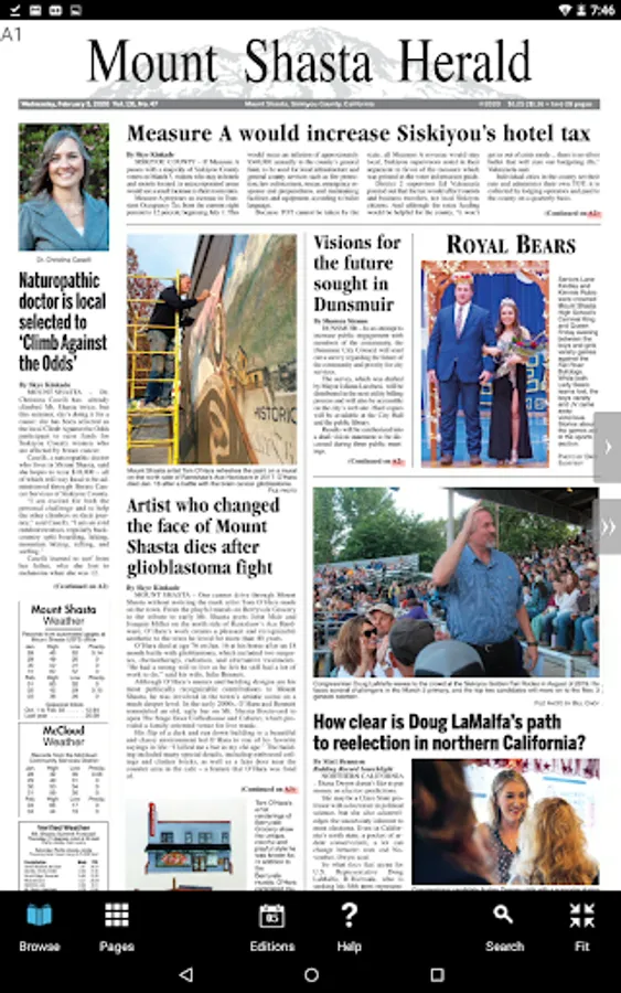 The Mount Shasta Herald ‘eNewspaper’ is an exact digital replica of the printed newspaper. Subscribers can flip through the pages, read stories, photos and view ads just they appeared in print.