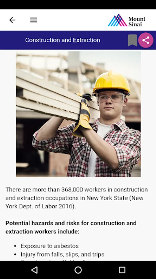 The Selikoff Occupational Safety App is an educational resource for workers on topics related to occupational health and workplace hazards.