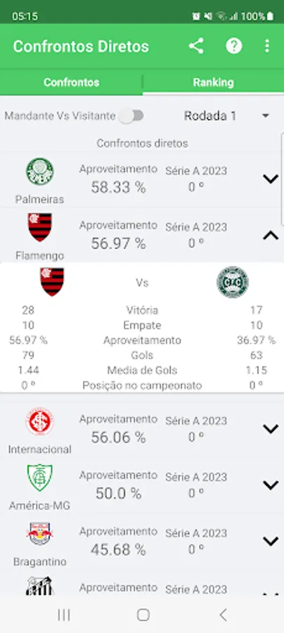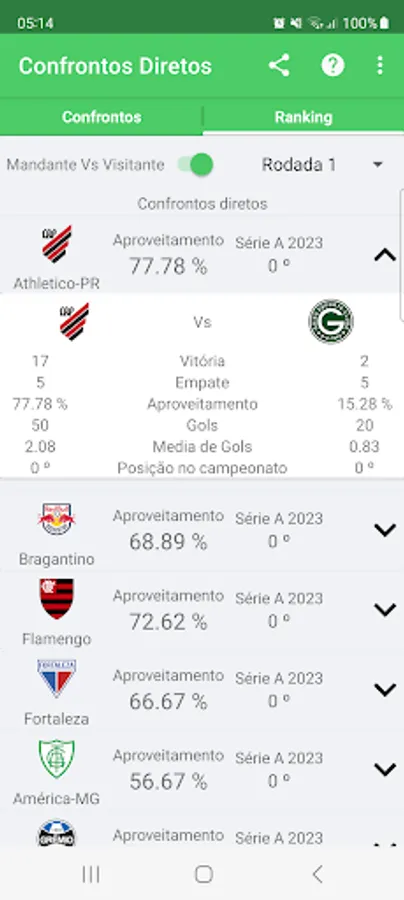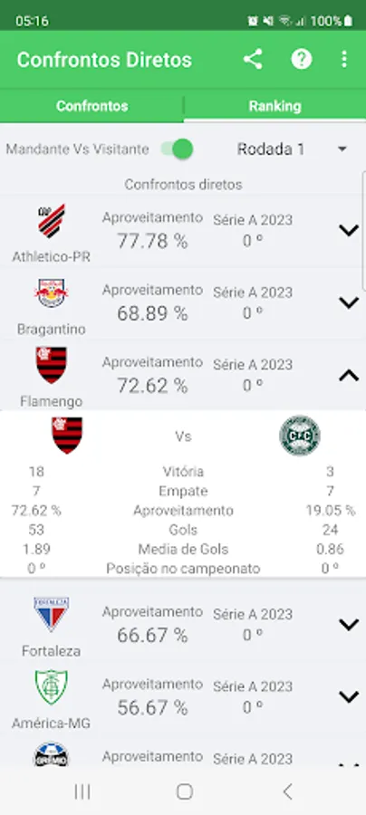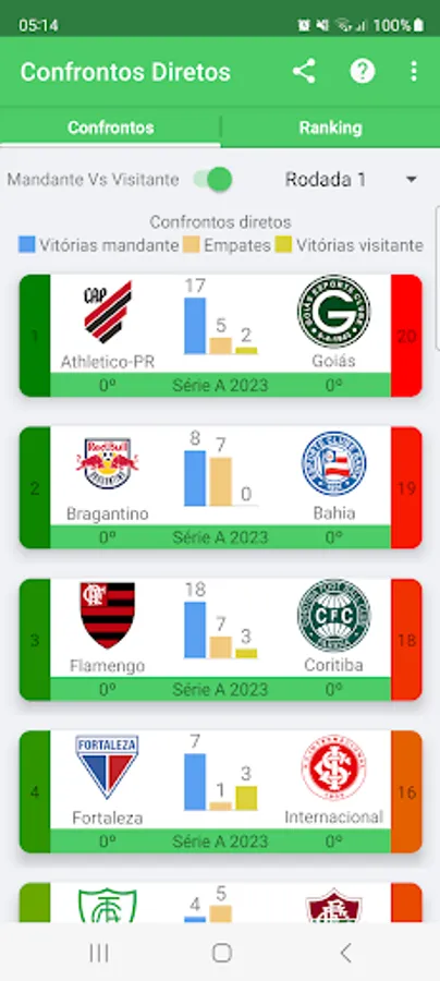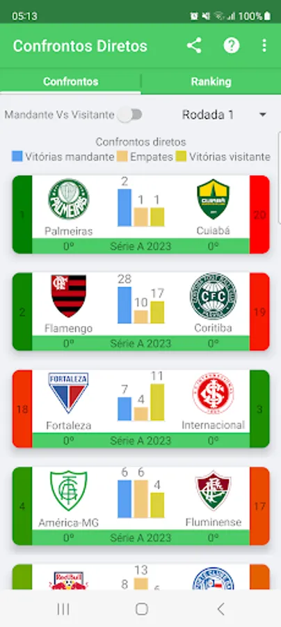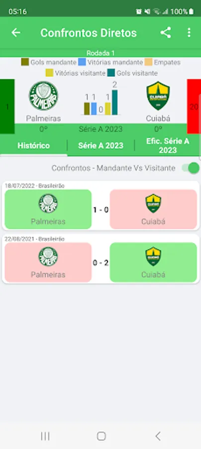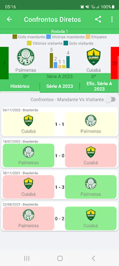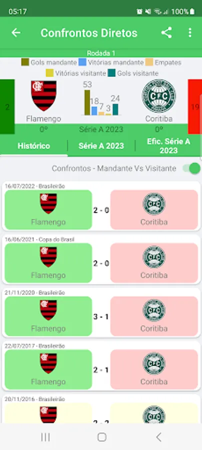 - Checking "Home Vs Visitor" it is possible to see all the matches between the teams;