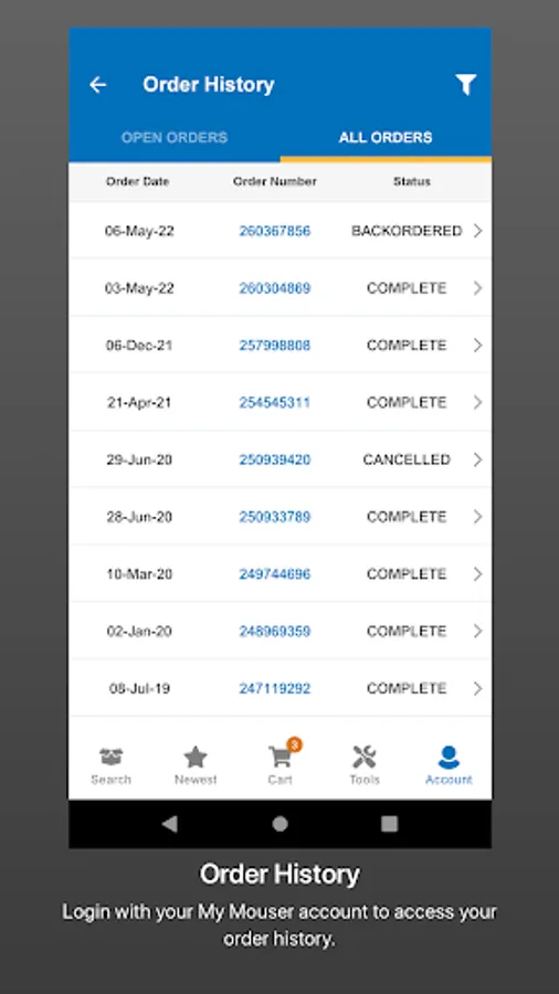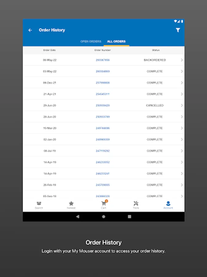 Use the app to access your My Mouser account to view order history, order details, and order status information. You can also bookmark products or add them to projects for quick access or to review offline. Always stay connected to Mouser and the newest products for your latest designs.