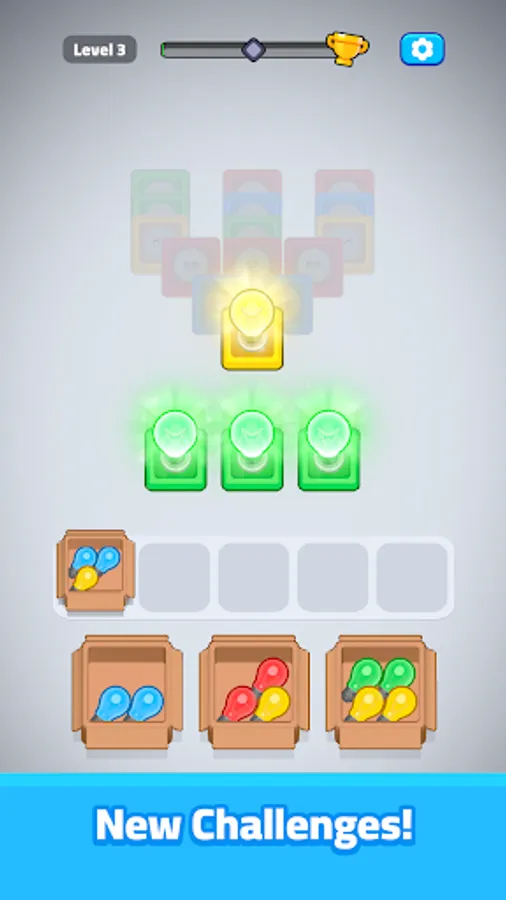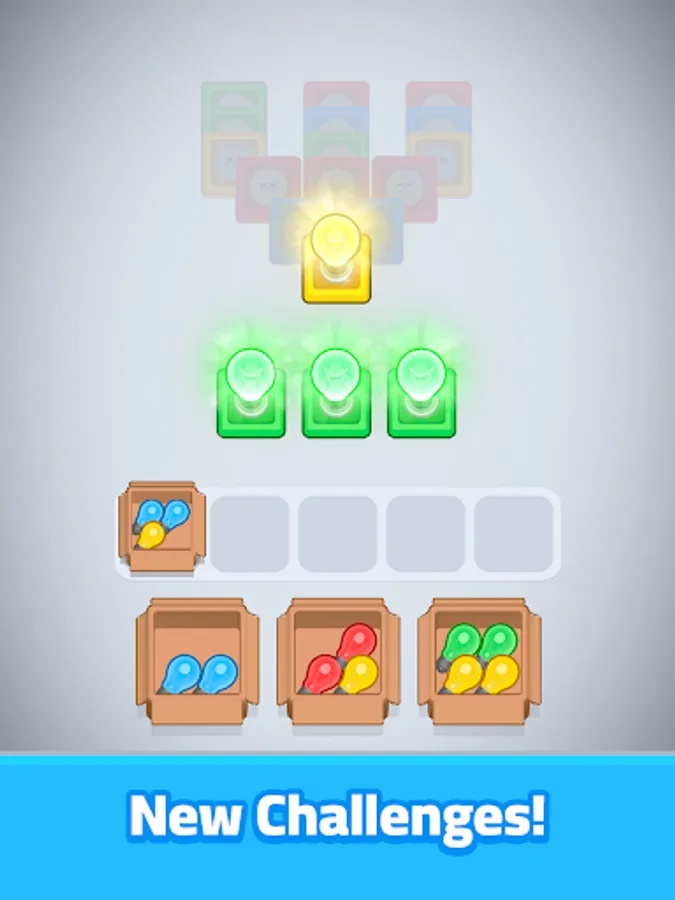 Welcome to Light Bulb Jam, the ultimate challenge in sorting brilliance! In this game, you'll match light bulbs with their corresponding colored sockets to power up and clear each level. Simple to pick up yet packed with engaging puzzles, Light Bulb Jam tests your focus and reflexes as the speed ramps up with each success. Perfect for quick play sessions or deep dives, it’s easy to play but hard to put down. Sharpen your sorting skills, light up each level and prove you're the brightest!