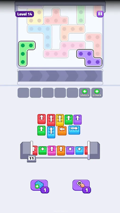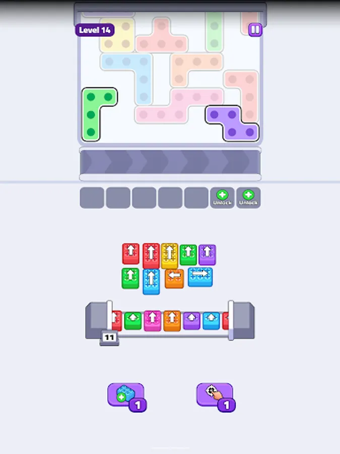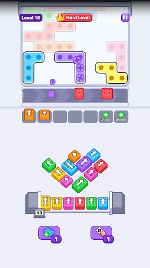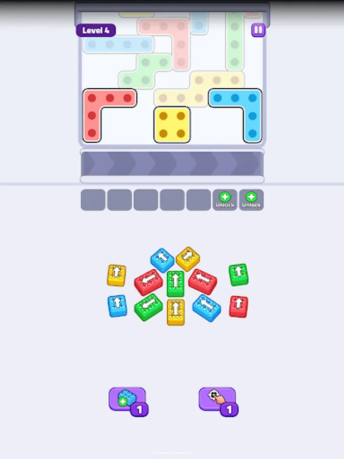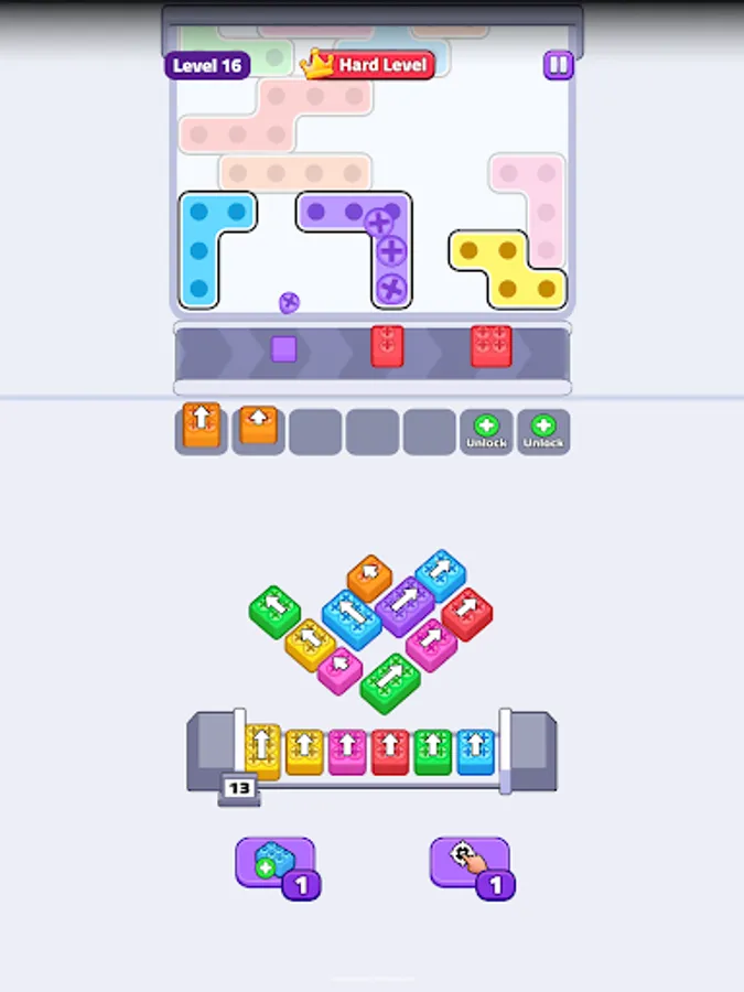 Tighten your puzzle skills in Screw Out! Tap on boxes with screws to release blocks and fill the grid above. Think ahead, match the right moves, and clear every level in this oddly satisfying screw-popping challenge.