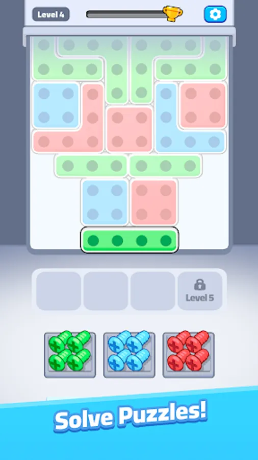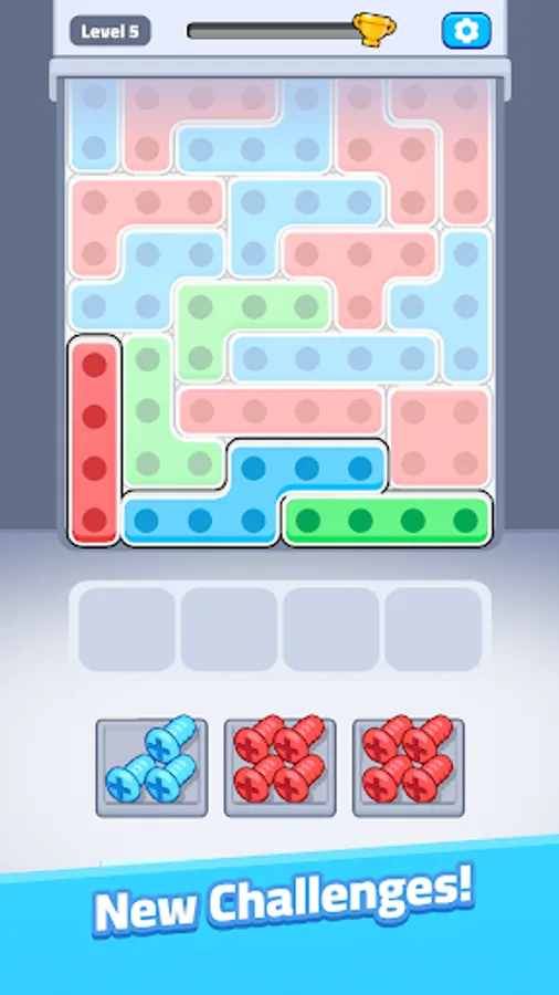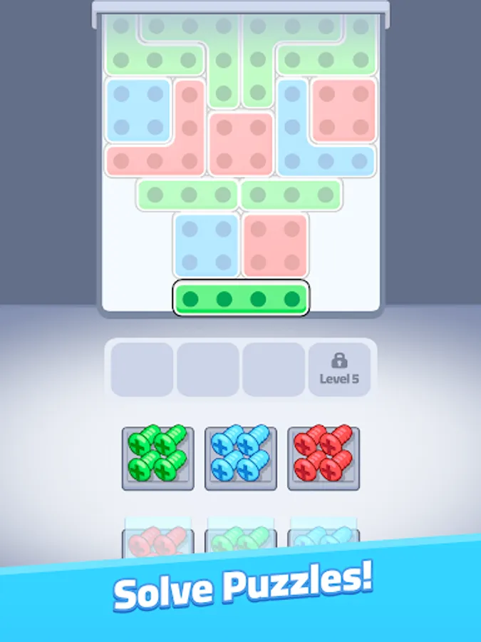 Welcome to Screw Rush, a dynamic puzzle game where your sorting skills are put to the test! Match screws to their perfect spots in Tetris-like blocks, filling the shapes as efficiently as possible. With each level, the challenge increases as more complex blocks and faster sorting are required. Easy to pick up and endlessly satisfying, Screw Rush combines fast-paced gameplay with a unique mechanical twist.
