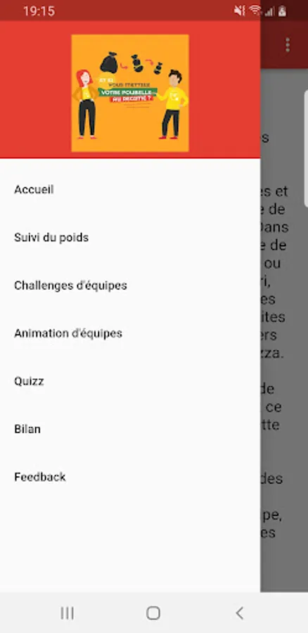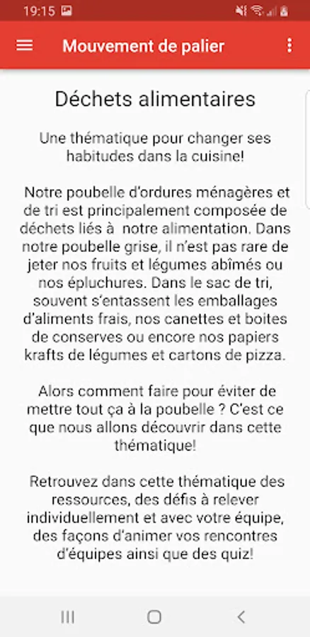 The application "Challenge Put your trash on a diet" is intended for participants of the challenge Put your trash on a diet. Its purpose is to help participants evaluate and measure the contents of their bins, to follow the topics covered through quizzes and to give themselves personal and team mini-challenges. This application also allows you to animate team meetings!