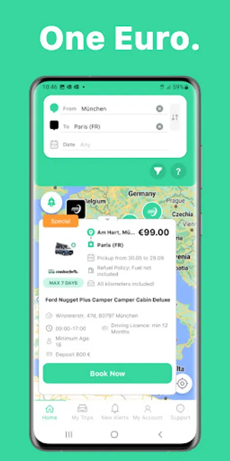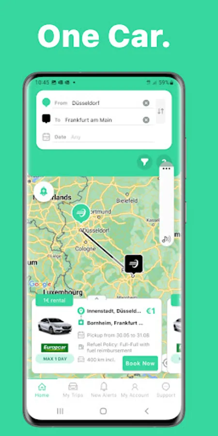 Car rental companies need to transfer thousands of vehicles from A to B every day to distribute their fleet across locations. With Movacar, you can take a transfer ride and use it as a super cheap travel option for you and your friends - for only 1 €! We offer different types of vehicles (cars, vans, campers, e-cars...) every day on routes within Germany and Europe. Whether you're planning a cheap city break or a short holiday in Europe, download the Movacar App, sign up and find your €1 rental car today!
