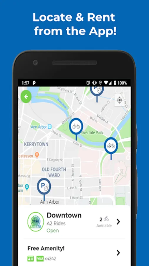 - Open the app to find nearby bikes, bike parking, scooters, bus stops, and more