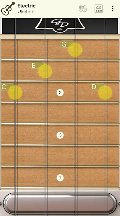 Guitar Droid can be played with one hand, touching the screen, or with two hands, selecting the notes in the fingerboard with one hand while with the other hand you can touch, strum or arpeggiate like on a real guitar.