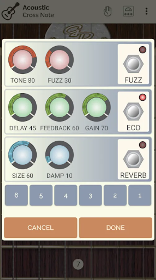 Guitar Droid includes a sound effects rack:
