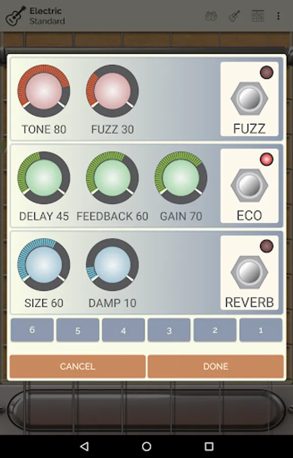 Guitar Droid lite includes a sound effects rack: