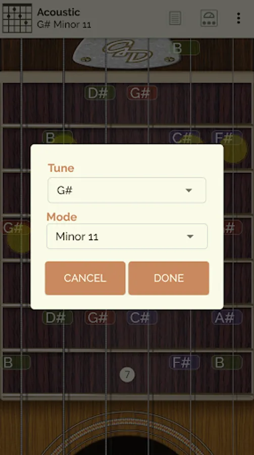 You can see and listen to 24 scale types and 18 chord types all along the fingerboard as well as the note info pulsed, on screen.