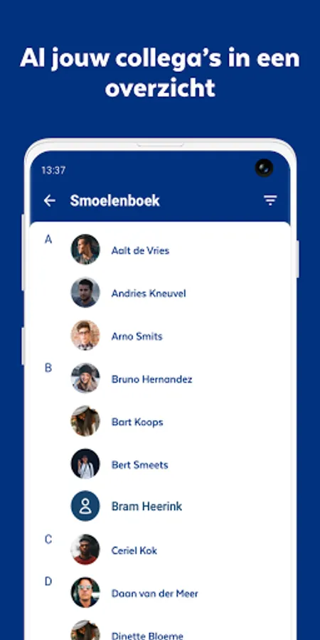 This app gives the company the opportunity to share current affairs easily and quickly with users via news messages and an agenda. In addition, important data such as a personal schedule, project information, face book, etc. are immediately and always available on your phone.