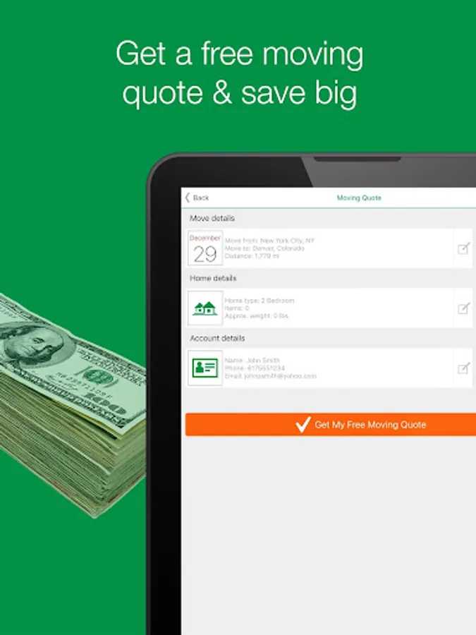 - Full network access. View network connection – We need this permission so that you can search movers in your area, read moving reviews, submit moving quotes and send e-mails.