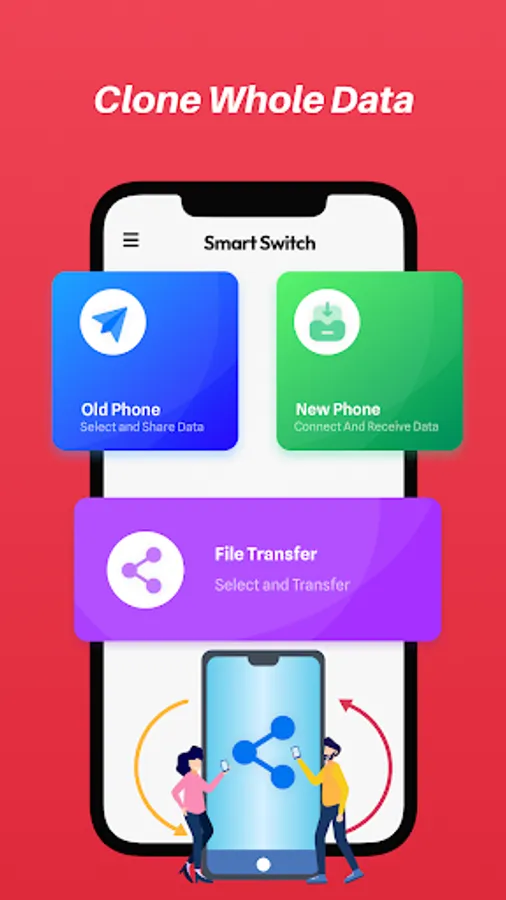 Smart Switch Data Transfer app comes with photo transfer, File transfer, videos, Contact transfer, smart transfer & Documents under the same roof. Smart switch send anywhere app is a simple & fast Data transfer app that migrates data from one Android phone to another phone. You can Copy My Data & Transfer Photos of any size or contact transfer to the new or old android phone. Users can Transfer My Data & move to android his data with one tap. Data Transfer & Clone App is here! The most excellent part of this Smart Switch or phone clone app, you can Quick Share Data of any size with ultra-fast transfer speed.