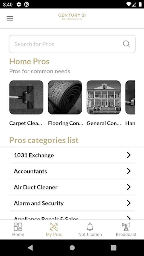 The CENTURY 21 Select Concierge App allows all CENTURY 21 Select Concierge clients to find the top rated home pros like cleaners, painters etc. recommended by your CENTURY 21 Select Concierge agent. You can also get timely reminders for your home such as changing your filter or checking your HVAC unit so that you don't have to remember those minute details to manage your home. Finally you can also get real time messages from your agent on all things happening in your neighborhood.