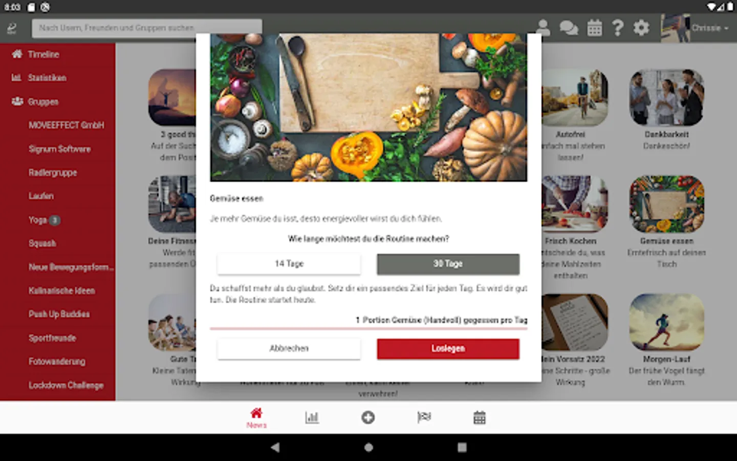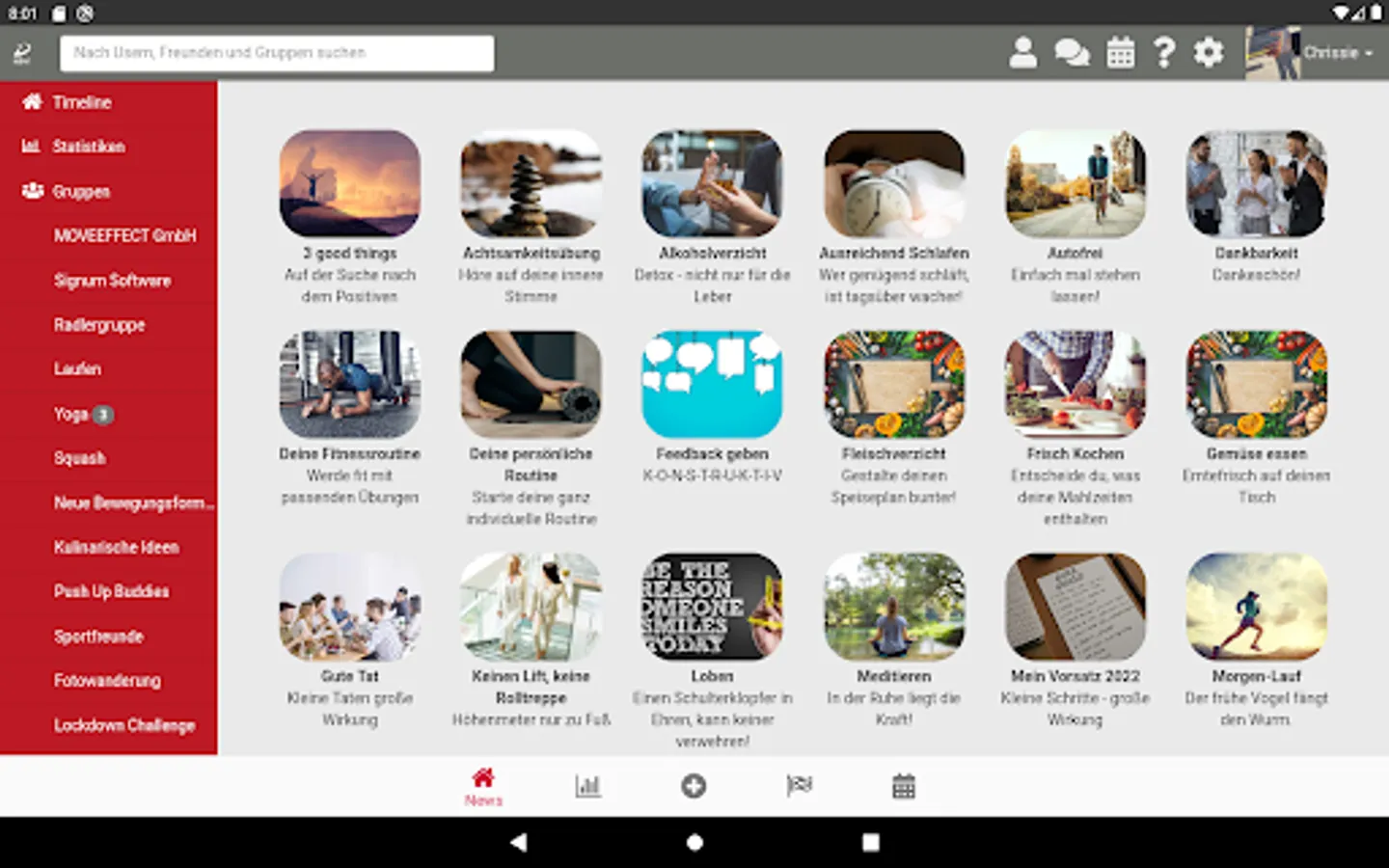 * Exercise and sports diary - additional incentive for more exercise through a clear and transparent display (exercise diary) and statistics