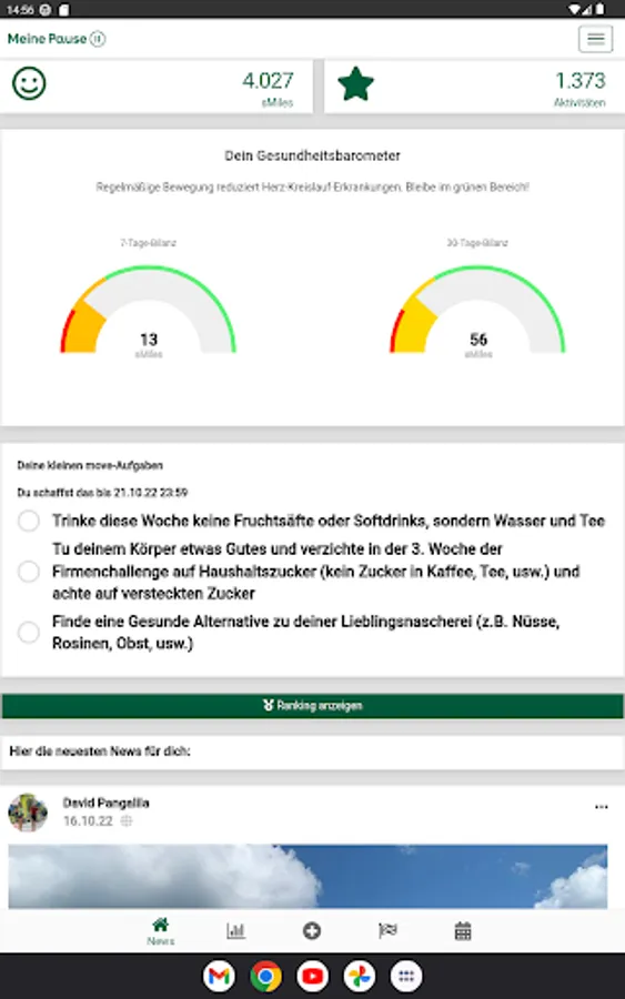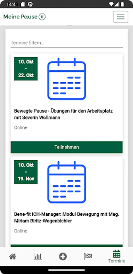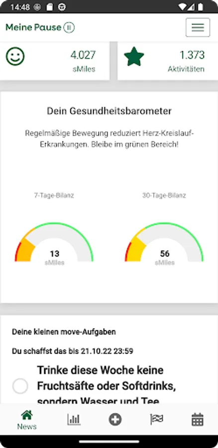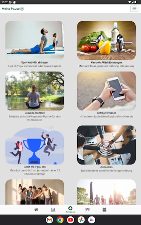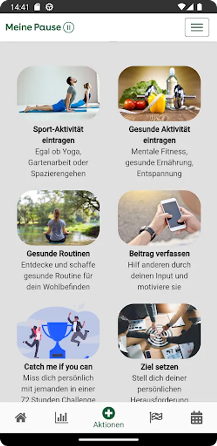 The digital program Meine Pause is available to AOK PLUS employees free of charge as part of internal company health management. It is to be understood as a source of inspiration for healthy short breaks in everyday work and contributes to physical and mental health. Use is voluntary.