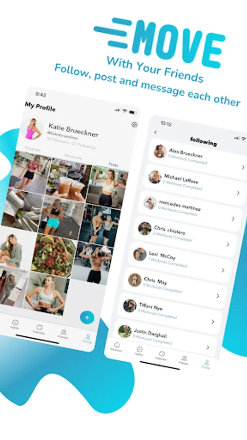 MOVE is a new and exciting fitness app with programs that can be done virtually anywhere you bring your phone. Move wherever you feel confident, Move at your own pace, Move with your friends and track your progress along the way. Josh and Katie Brueckner have been involved in the fitness industry for over 10 years and have helped inspire and motivate countless others to begin their fitness journey. Choose how you Move and select from a wide range of fitness programs, pick a fitness level tailored to your abilities, and choose a location where you feel comfortable and confident.