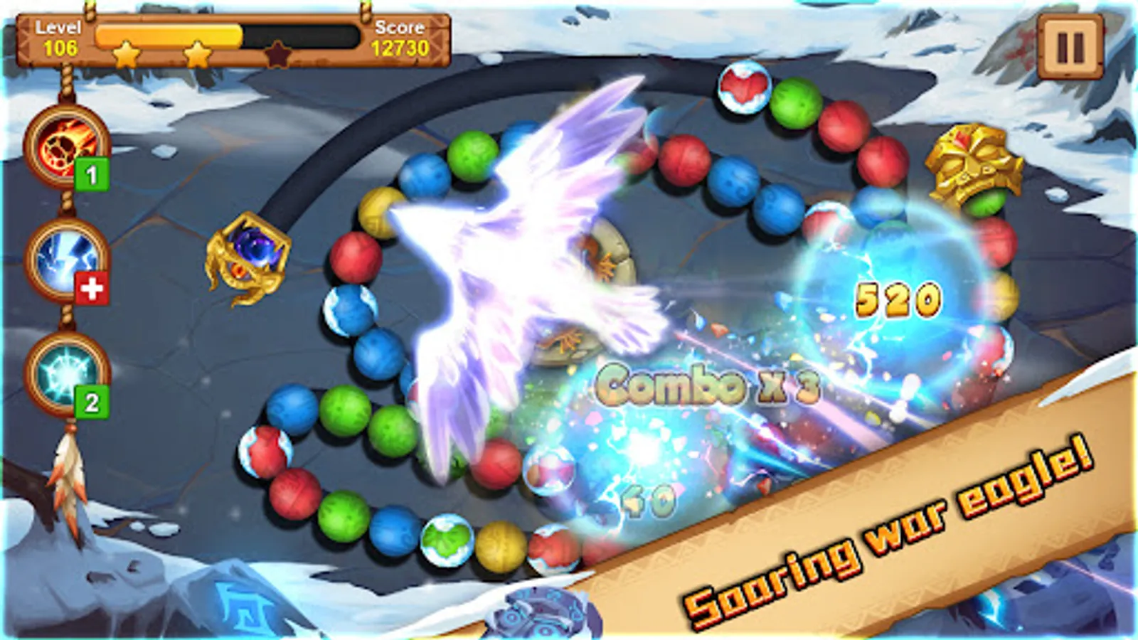 When the villagers were in fear, a mysterious frog with the soul of colorful marbles appeared in the ancient city, its name was Zuma. He has absorbed the powferful energy from the colorful marbles for long and was familiar with the their movements and local terrain. Zuma decided to help the villagers ruin the plan of the God of Night and save the ancient city.