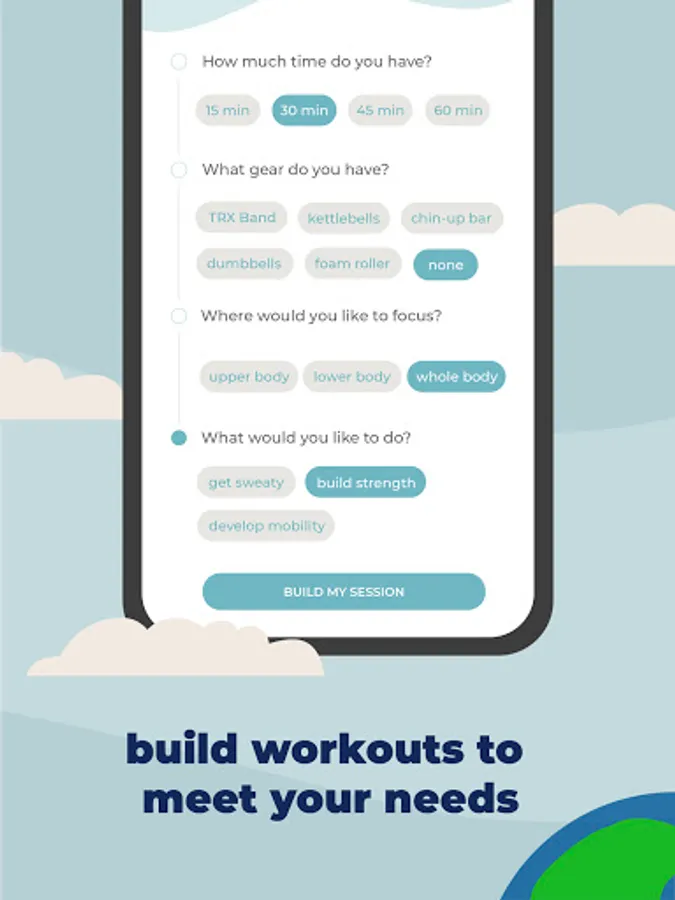 - Builder helps you create custom workouts to build strength, develop mobility or increase endurance at a level that's right for you