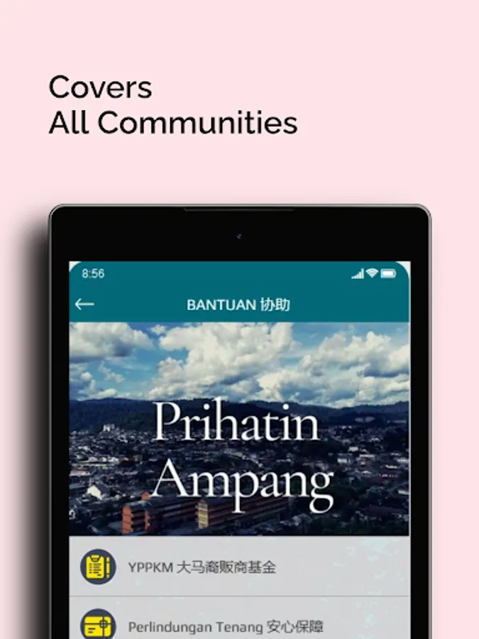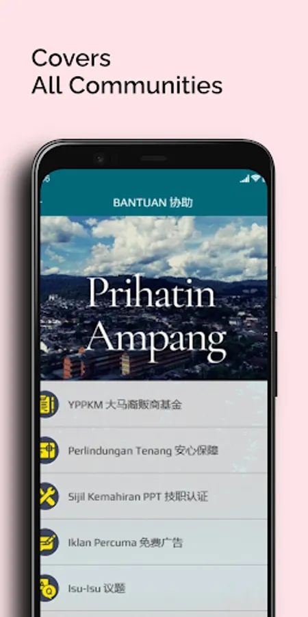 The accommodations offered in this area include luxury housing and old single-storey terrace houses. There are also many houses and low-cost flats which are highly affordable to the lower- and middle-income group. To serve the different local communities, Prihatin Ampang app is designed to disseminate assistance information to those residents of this area in the recovery phase.