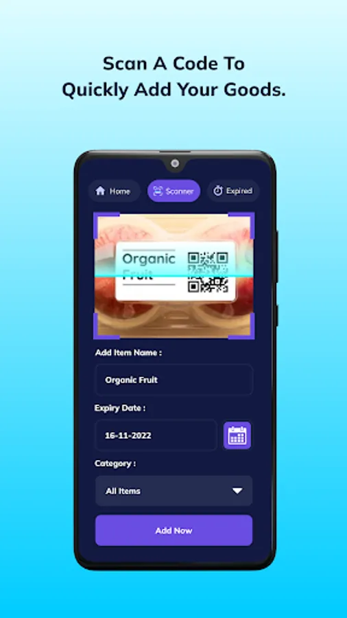 ->Expiry QR Code First Scan QR Code and Bar Code, Save and Show List
