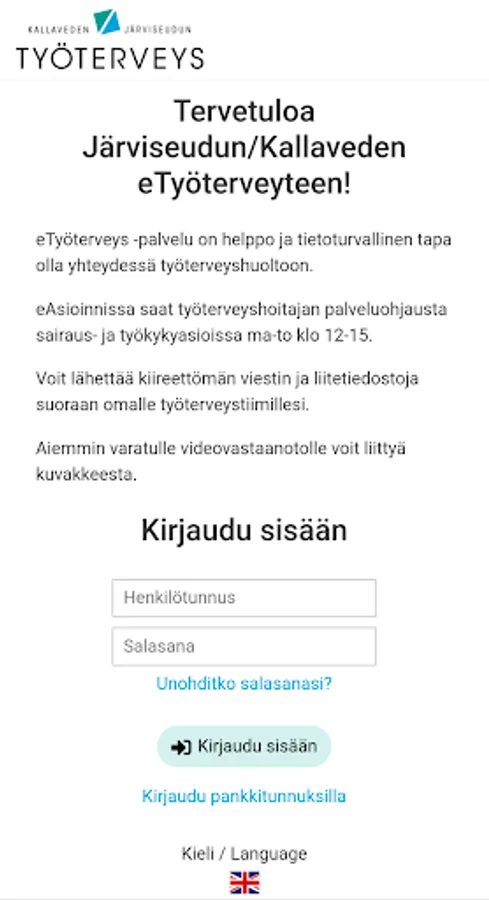 Through the occupational health transaction channel, you can contact us effortlessly and securely. The app provides guidance on health and work-related issues. In urgent matters, you can communicate with your own occupational health team. You can also join a booked video reception, book an appointment, and view upcoming and past bookings.