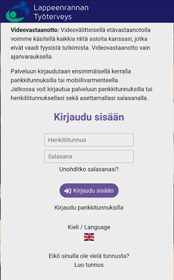 Lappeenranta Occupational Health - remote service application