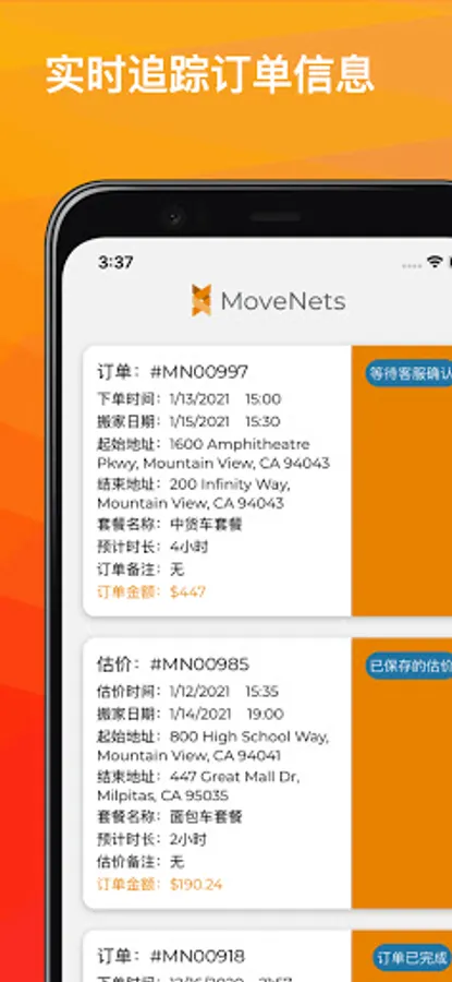 -After logging in, you can check the order status at any time, and the moving dynamics are under control